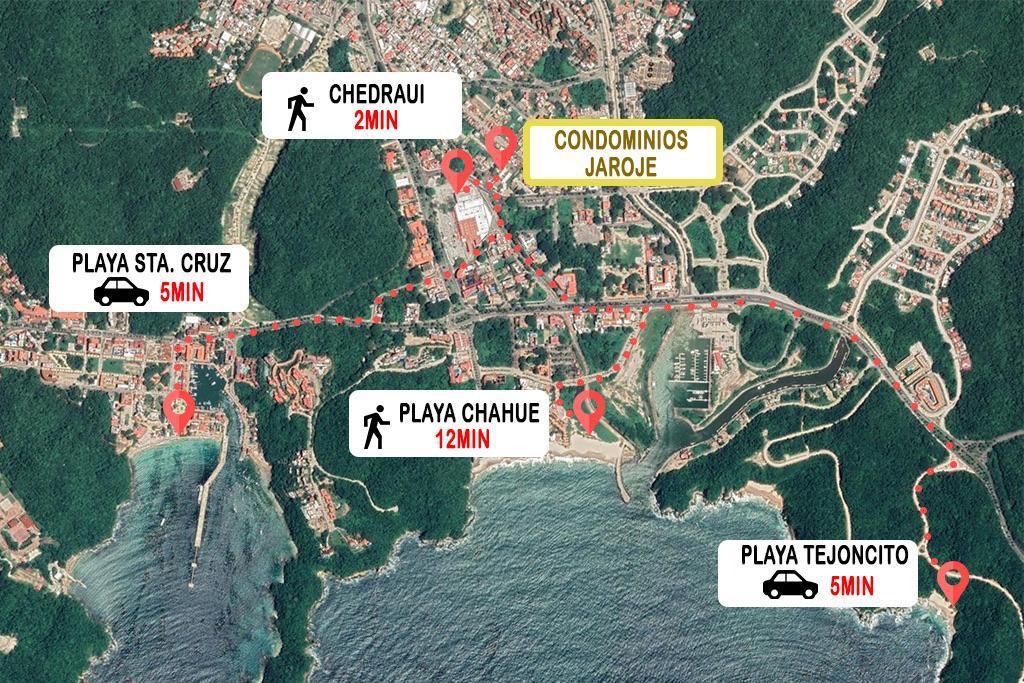 Bahías de CHAHUE, SANTA CRUZ, y PLAZA PRINCIPAL de la Crucesita a 10 minutos caminando.